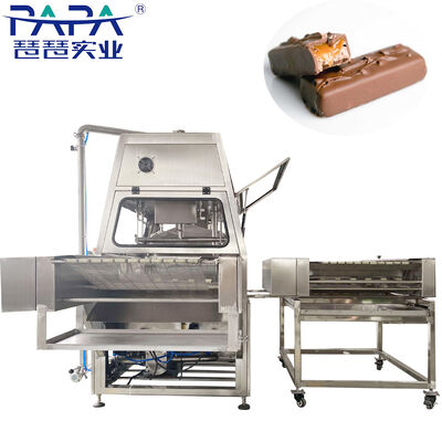 Máy nhúng sô-cô-la chuyên nghiệp này được thiết kế đặc biệt để phủ lớp sô-cô-la hiệu quả và đồng đều cho thanh Snickers và các thanh sô-cô-la nhân khác.